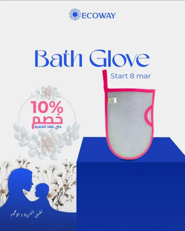 قفاز مقشر للبشرة مدعم بايونات الفضة مضاد للبكتريا و الجراثيم يحفز خلايا الجلد و ازالة الجلد الميت يستخدم مع الماء الساخن فقط يمكن ايضا استخدام صابون ايكو واي الطبيعي 100% للانواع المختلفة للبشرة